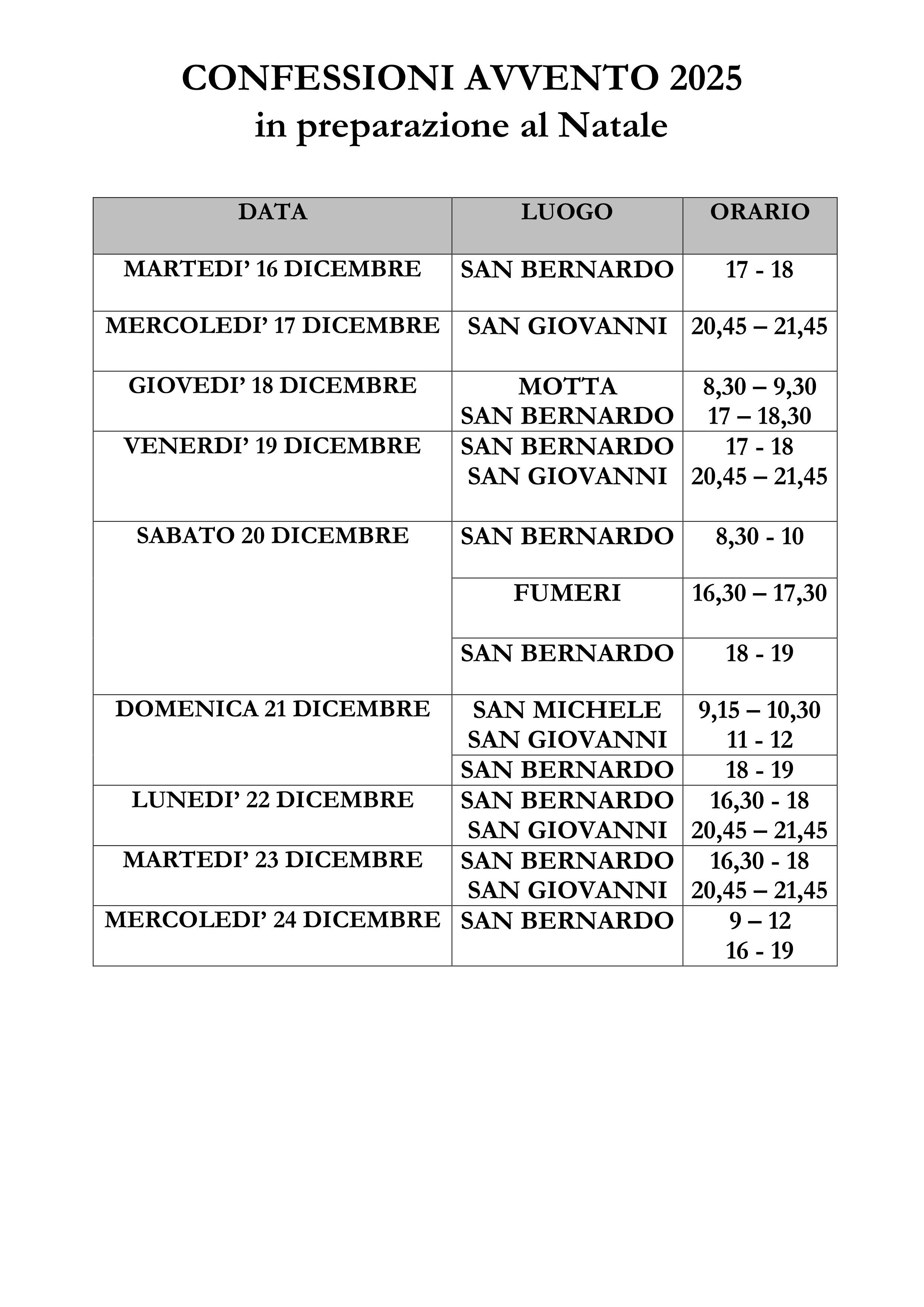 Cari amici di San Bernardo, San Giovanni e San Michele,